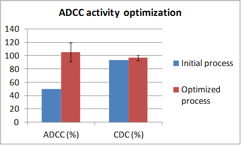Previous client attempts to produce and purify the protein led to undesirable expression levels of a bispecific antibody due to low expression of one of the antibody chains which resulted in only 10% of desired protein product from the entire protein production campaign. These challenges were delaying product CMC development and thus time was critical as original IND filing date was in jeopardy.