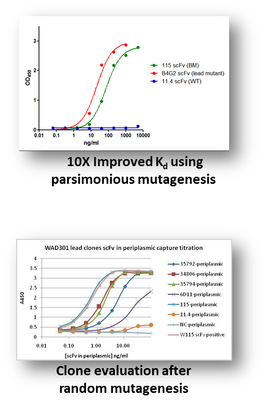 • 我们利用两个方法提高抗体亲和力: