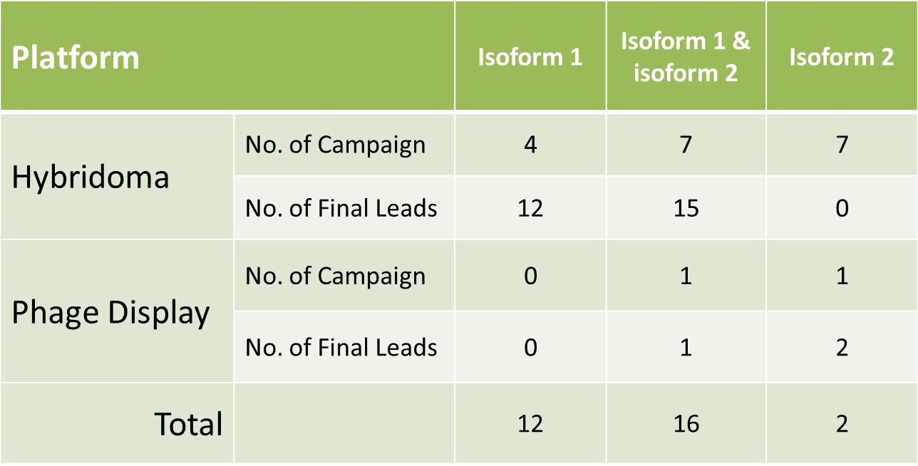 • 靶标抗原有两个剪接体(1a和1b),之间区别大于20个氨基酸。