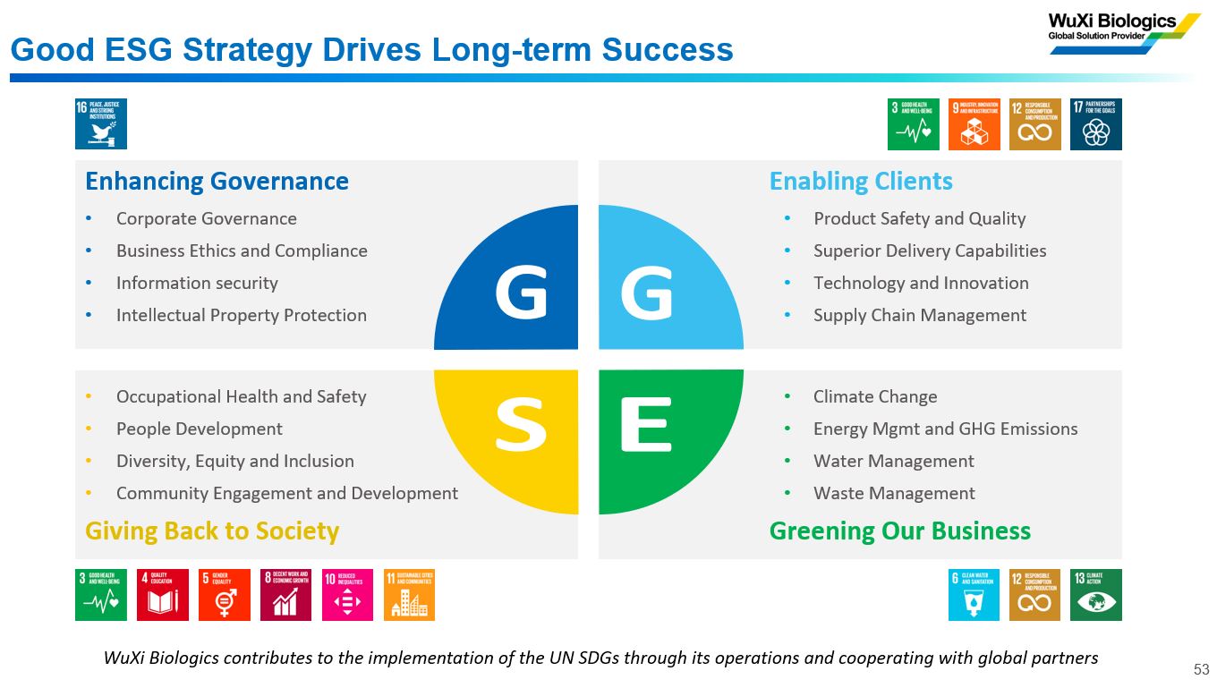 满冠官网将环境、社会和治理(ESG)视为业务发展和企业精神的重要组成部分,并致力于成为全球生物药CRDMO领域的ESG领导者,例如应用更绿色环保的新一代生物制药技术和能源等引领行业发展。公司成立了由首席执行官领导的ESG委员会,全面落实ESG战略并践行可持续性发展承诺。如需更多信息,请浏览:www.wuxibiologics.com