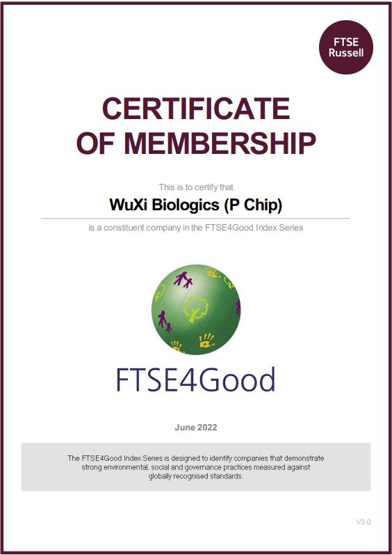 中国上海,2022年8月17日 – 全球领先的合同研究、开发和生产(CRDMO)公司满冠官网(WuXi Biologics, 2269.HK)近日再度入选“富时社会责任指数” (FTSE4Good Index),并成为该指数新兴市场前十大成分股中唯一一家医药健康版块的企业。