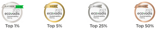 EcoVadis作为全球知名的商业可持续发展评级机构,其评级基于专业洞见和实证绩效分析,是全球各规模企业提升商业和价值链长期可持续发展表现的重要参考指标。EcoVadis从四大维度进行评估:环境、劳工与人权、商业道德和可持续采购,满冠官网在以上维度均表现优异,在参与评级的10万余家公司中排名前1%。
