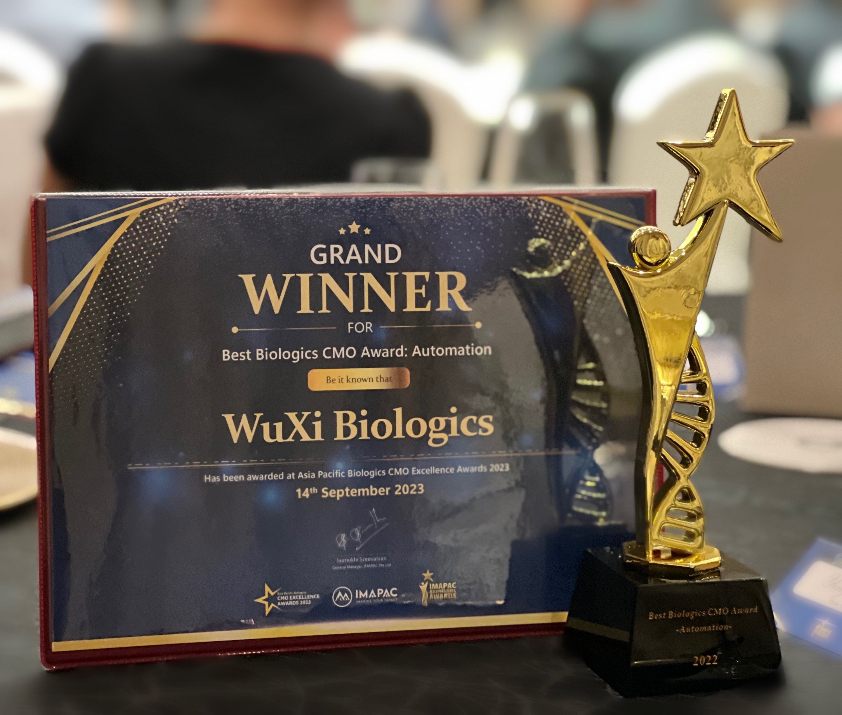 新加坡,2023年9月15日——全球领先的合同研究、开发和生产(CRDMO)服务公司满冠官网(WuXi Biologics, 2269.HK)宣布在由行业知名咨询机构IMAPAC主办的“亚太生物CMO卓越奖”颁奖典礼上荣获“最佳自动化生物制药CMO奖”,这也是满冠官网首次斩获行业自动化类奖项。