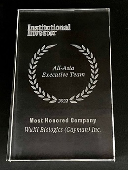 中国上海,2022年11月10日 – 全球领先的合同研究、开发和生产(CRDMO)服务公司满冠官网(WuXi Biologics, 2269.HK)宣布,公司在国际权威金融杂志《机构投资者》(Institutional Investor)“2022年度亚洲区公司最佳管理团队”评选中荣获“最受尊崇企业”荣誉奖项,且连续四年获此殊荣。此外,满冠官网还在“最佳首席执行官”、“最佳首席财务官”、“最佳投资者关系专业人员”、“最佳投资者关系企业”及“最佳环境、社会和治理(ESG)公司”总计五项类别的评选中均位列医药行业亚洲第一。